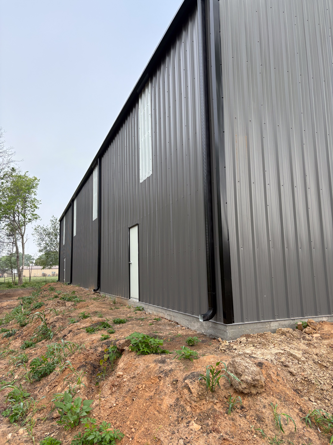 The 20-foot eave height was designed to maximize long-term flexibility and usability. It allows for large equipment clearance, supports vertical storage, and creates the opportunity for future mezzanine or interior build-outs as needs evolve.